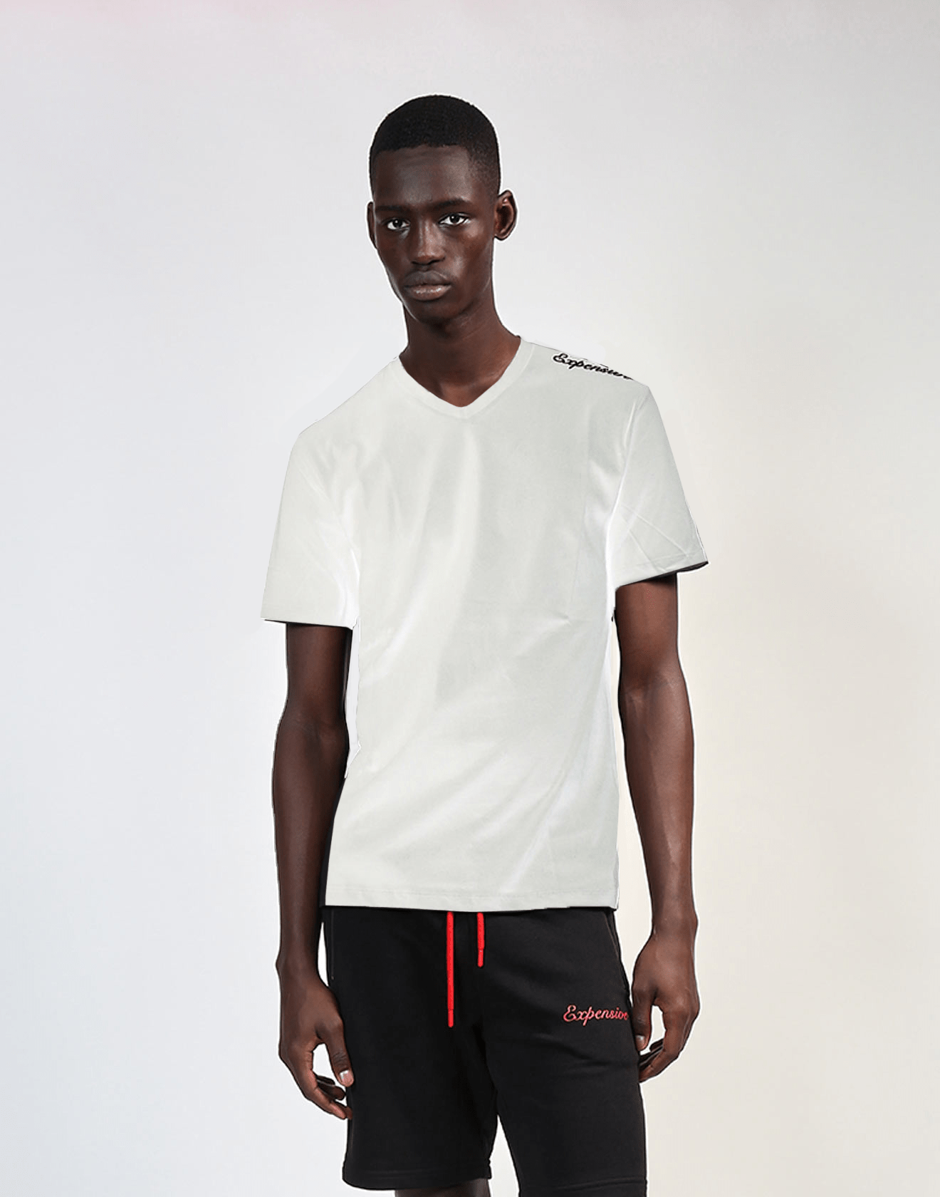 V-Neck “Expensive” Shoulder T White
